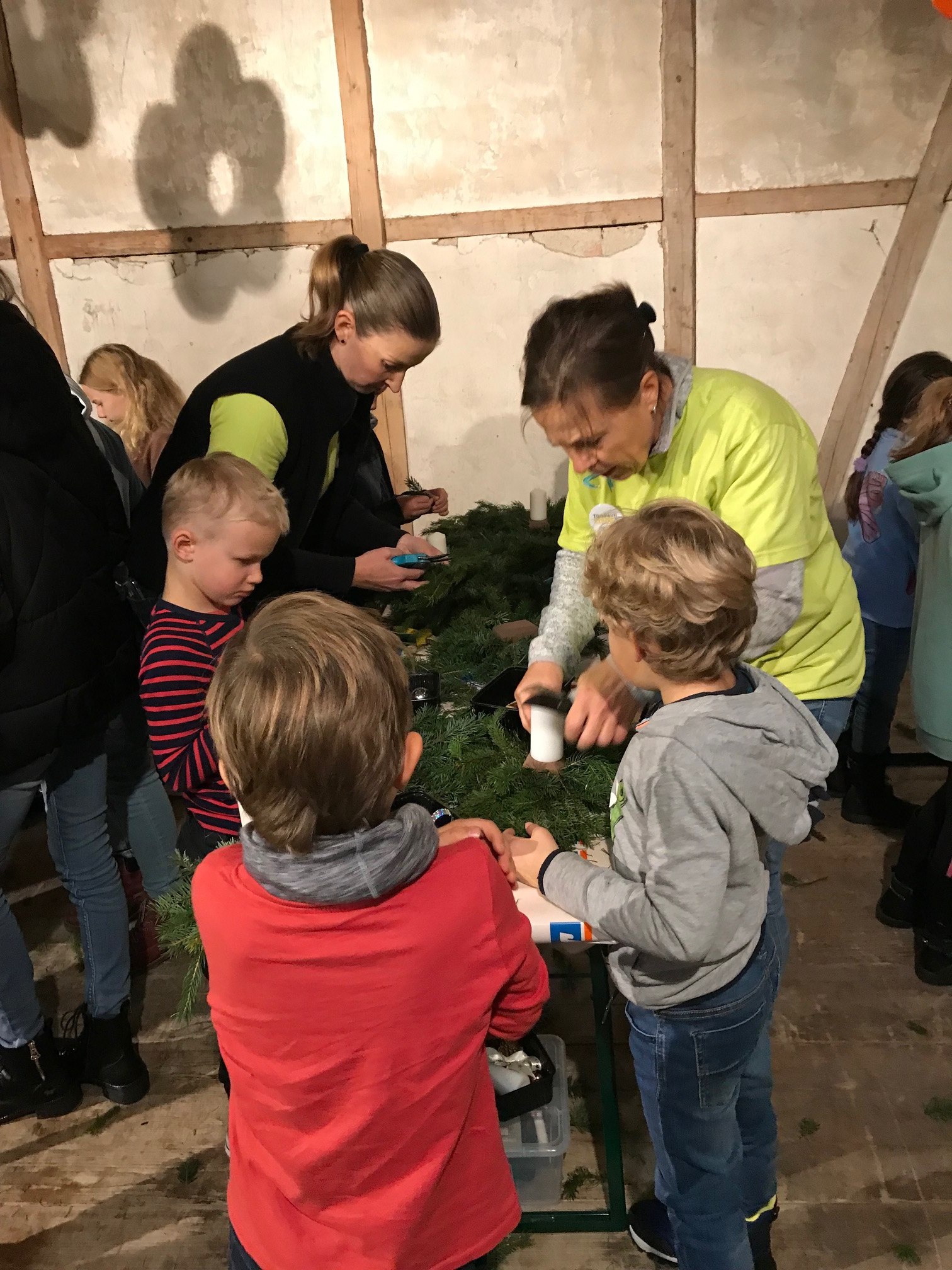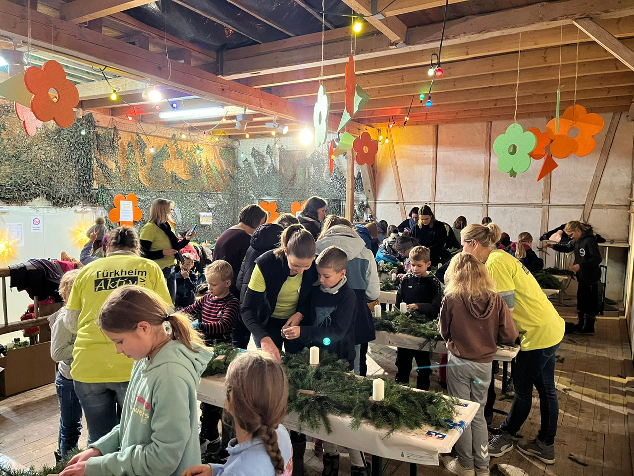 Am Samstag Nachmittag wurde unsere Dorfscheune zur großen Werkstatt und die Kinder haben unter Anleitung von den vielen Türkheim Aktiv Helferinnen und Helfern tolle Adventsgeschenke gebastelt. Auch für das leibliche Wohl war gesorgt und als die Gestecke fertig waren, hat sogar noch der Weihnachtsmann mit seinem Knecht Ruprecht vorbeigeschaut und Geschenke verteilt.